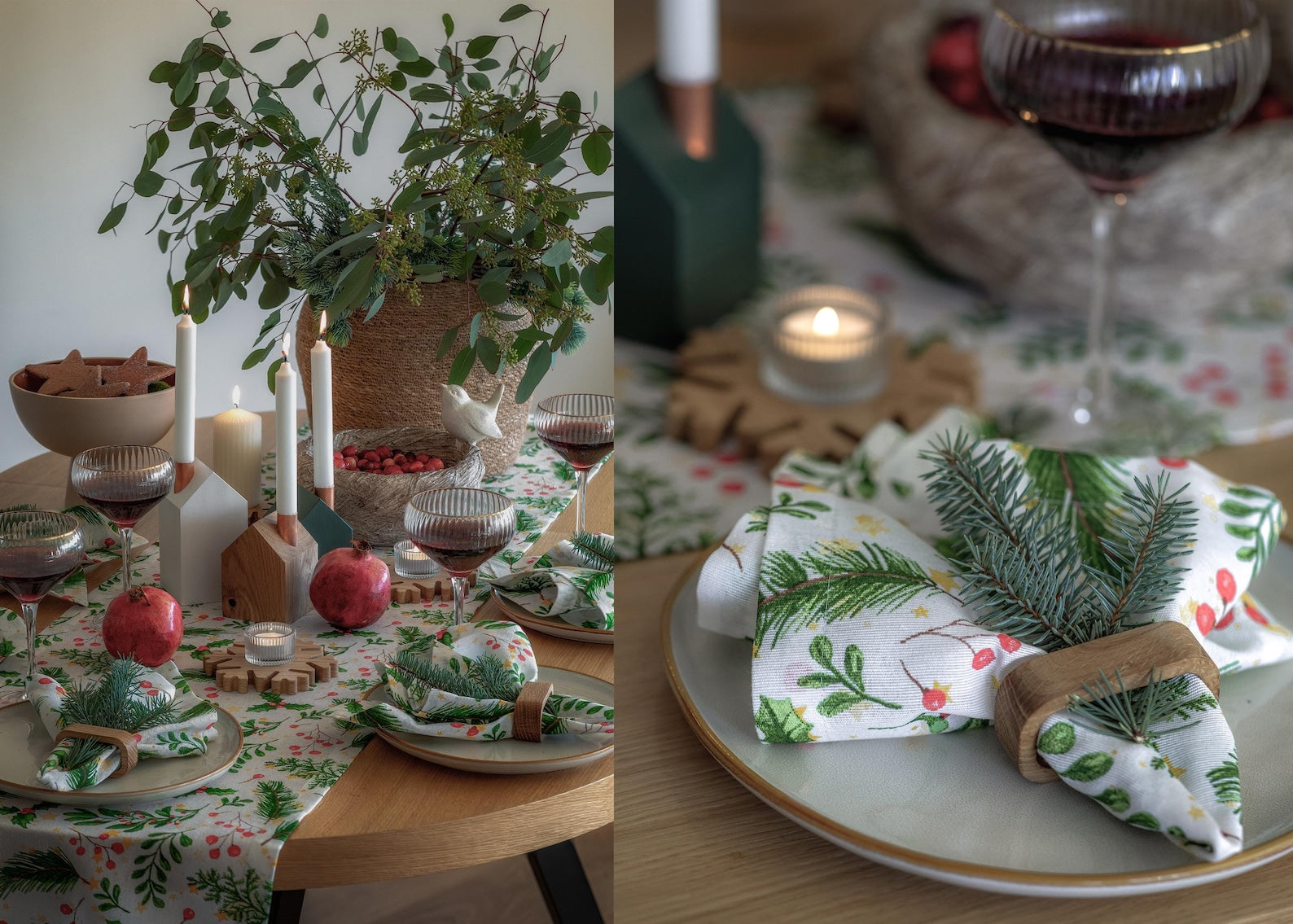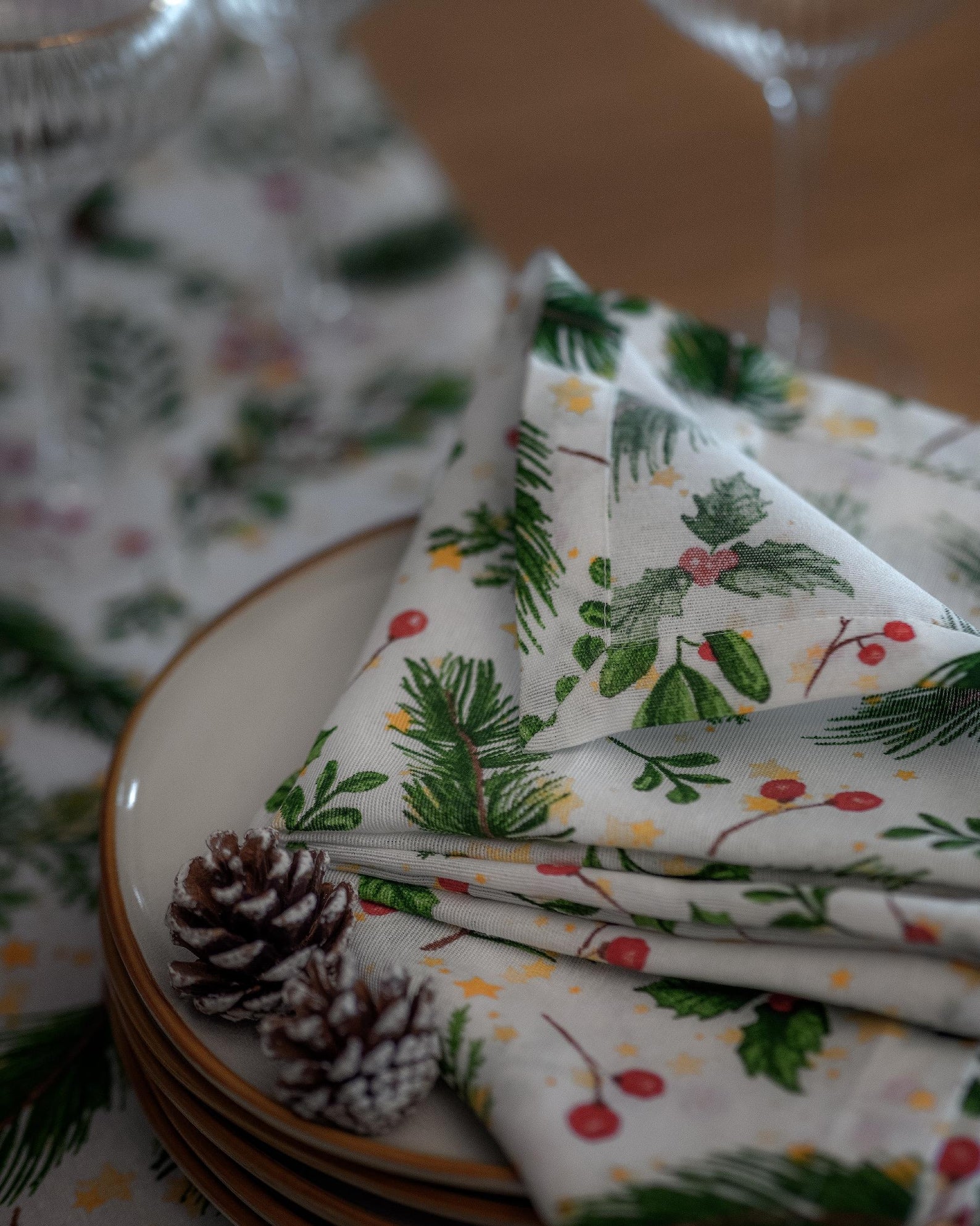 Napkins set of 4. BRIGHT CHRISTMAS, bright, colorfull festive motive design. Sewn from decorative 70% cotton, 30% polyester.