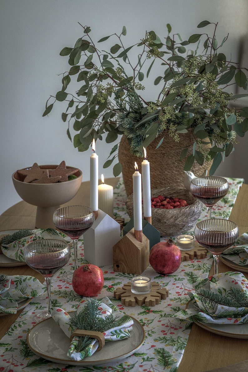 Table runner BRIGHT CHRISTMAS, bright, colorfull festive motive design. Sewn from decorative 70% cotton, 30% polyester.