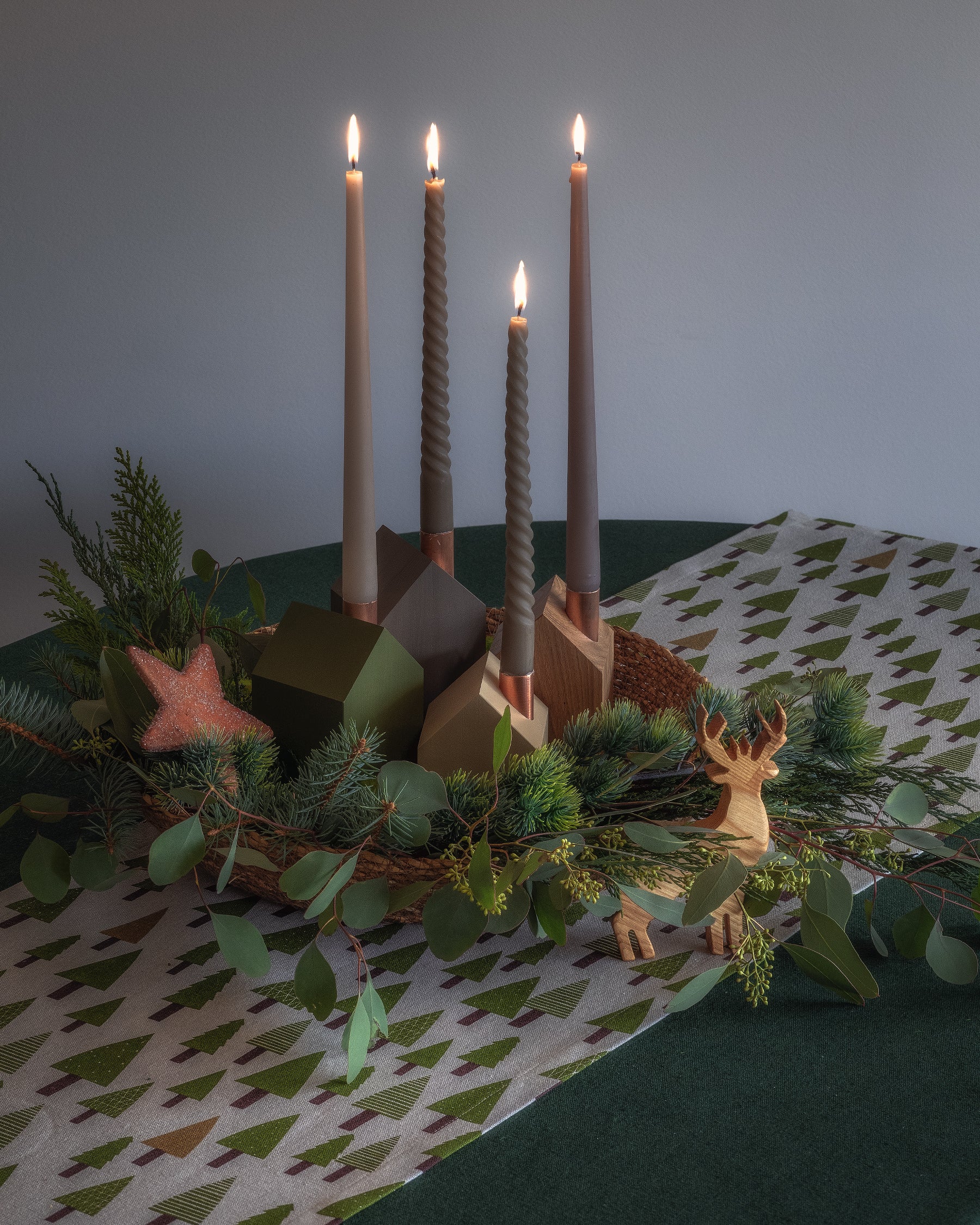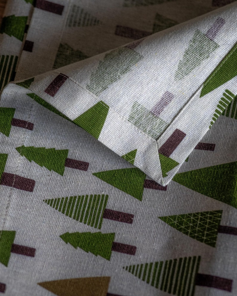 Table runner FOREST STORY, sewn from decorative 100% cotton. Nice Christmas motive Scandinavian minimalist style design.