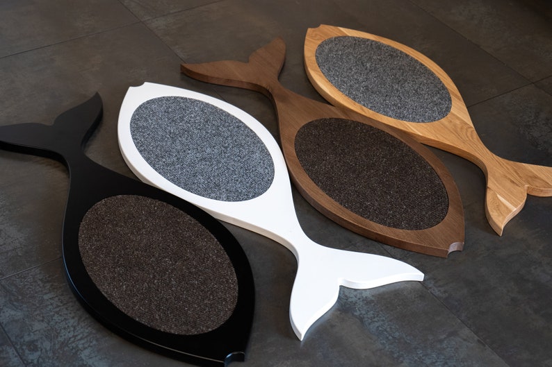 Mūsu ideja ir tāda, ka skrāpējam ir jākalpo ne tikai mājdzīvnieku nagu asināšanai, bet arī jābūt estētiskam, lai mājas saimnieks, skatoties uz to, justos patīkami. Pateicoties koka dabiskajai daudzveidībai, katram gabalam ir unikāla tekstūra. Uzklātā melnā špaktele mezglu, plaisu un citu dabisku defektu vietās padara priekšmetu nedaudz zemniecisku.