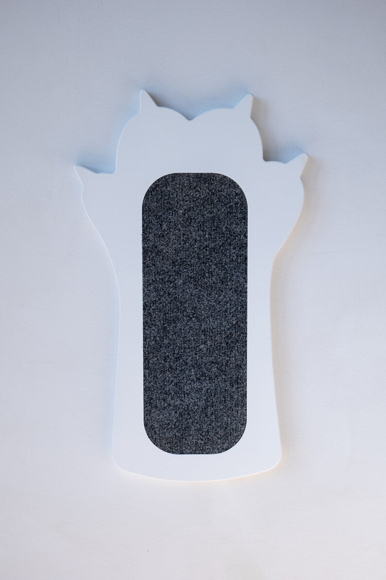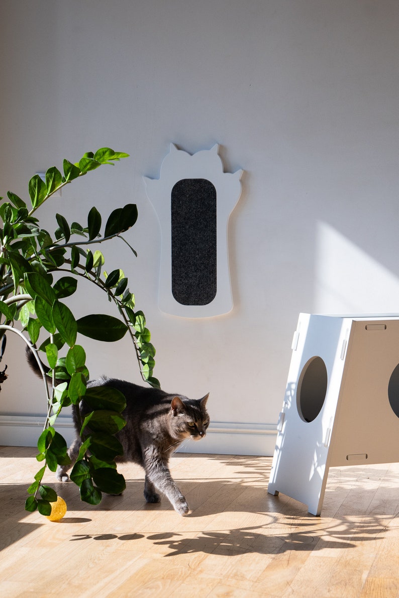 Mūsu ideja ir tāda, ka skrāpējam ir jākalpo ne tikai mājdzīvnieku nagu asināšanai, bet arī jābūt estētiskam, lai mājas saimnieks, skatoties uz to, justos patīkami. Pateicoties koka dabiskajai daudzveidībai, katram gabalam ir unikāla tekstūra. Uzklātā melnā špaktele mezglu, plaisu un citu dabisku defektu vietās padara priekšmetu nedaudz zemniecisku.