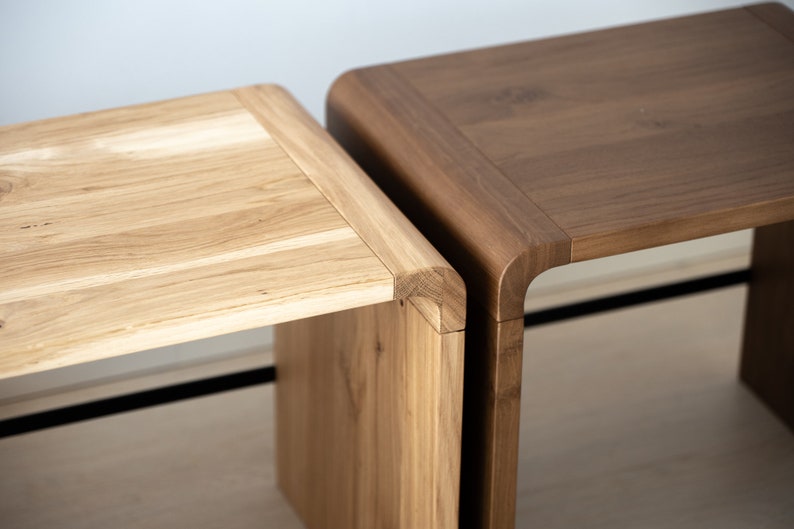 This elegant modern record rack, shelf/stand is hand made from natural solid oak wood. You can choose between the natural oak look or walnut color.