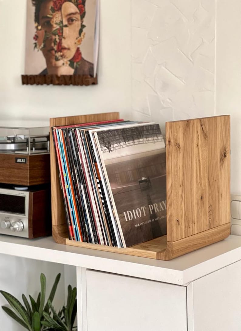 Put together your precious vinyl records in this modern elegant designed natural oak wood storage rack, stand/shelf !This record rack allows you to quickly reach your favorite records and will make an elegant look in your interior.